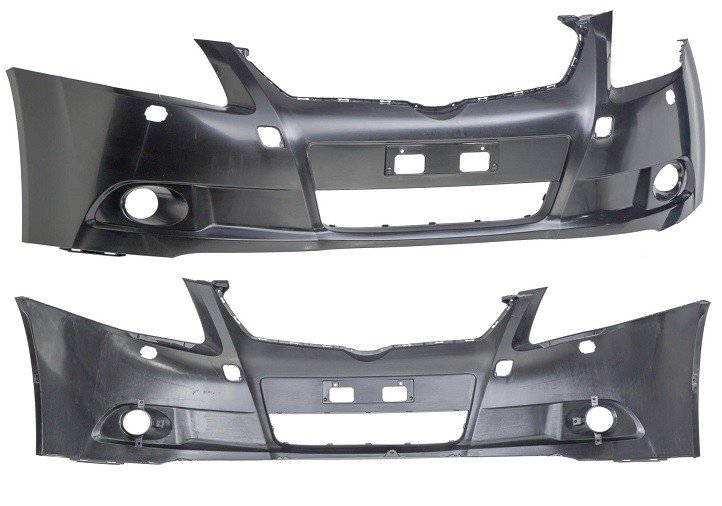 Noir, sans apprêt avec trous pour lava-phares. Livré nu, sans grilles ni moulures.