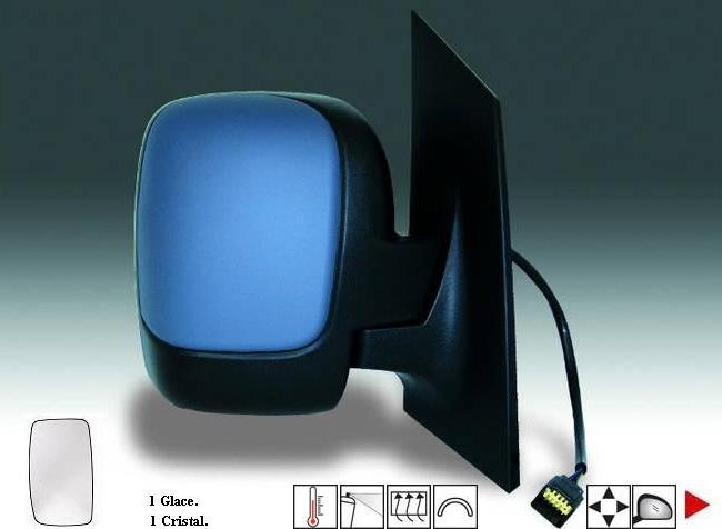 Pour rétroviseur 1 Glace. Complet, avec coque à peindre à la couleur du véhicule et glace convexe. Réglage intérieur électrique, dégivrant avec sonde de température.
