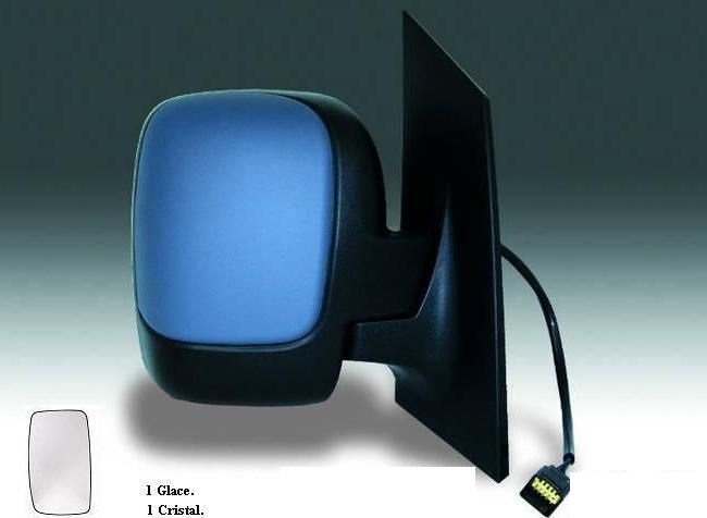 Pour rétroviseur 1 Glace. Complet, avec coque à peindre à la couleur du véhicule et glace convexe. Réglage intérieur électrique, dégivrant avec sonde de température.